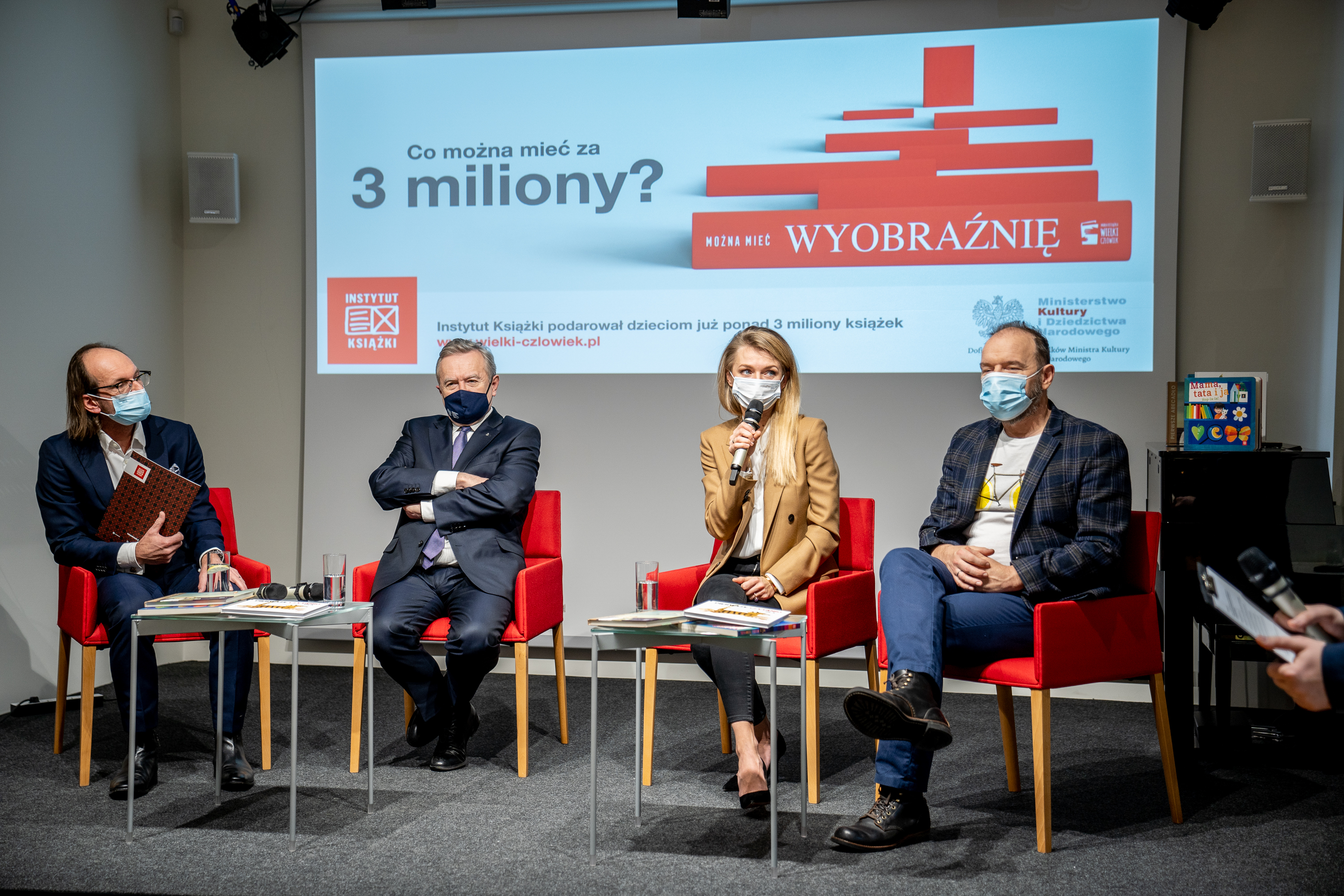 Dziś w Warszawie odbyła się konferencja prasowa podsumowująca ostatnią edycję kampanii „Mała książka – wielki człowiek”. Wzięli w niej udział minister kultury i dziedzictwa narodowego prof. Piotr Gliński, zastępca dyrektora Instytutu Książki prof. Krzysztof Koehler, a także para aktorów Emilia Komarnicka-Klynstra i Redbad Klynstra-Komarnicki, ambasadorzy kampanii.