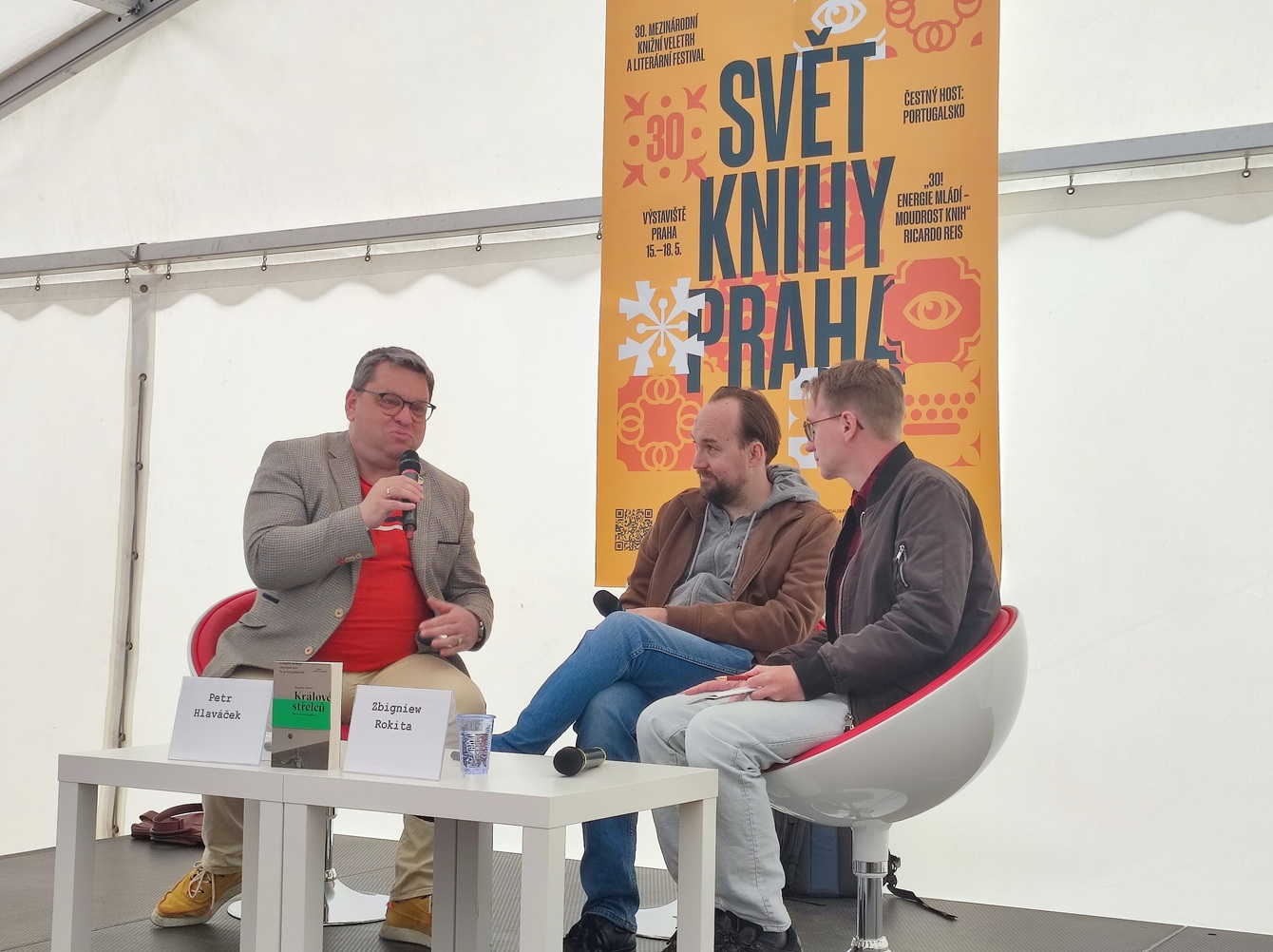 W pierwszy dzień targowy odbyła się dyskusja rezydentów V4 (Wyszehradzkie Rezydencje Literackie) w Pradze zatytułowana Zmęczenie, pamięć i współczesne społeczeństwo w literaturze środkowoeuropejskiej, w której uczestniczyła Barbara Woźniak. Tego dnia z czytelnikami spotkał się także Zbigniew Rokita, którego książka Królowie strzelców. Piłka w cieniu imperium w przekładzie Martina Veselki ukazała się niedawno w serii reportażowej wydawnictwa Absynt. Dyskusję poprowadził czeski historyk i publicysta Petr Hlaváček. Wkrótce ukaże się kolejna książka Zbigniewa Rokity po czesku.