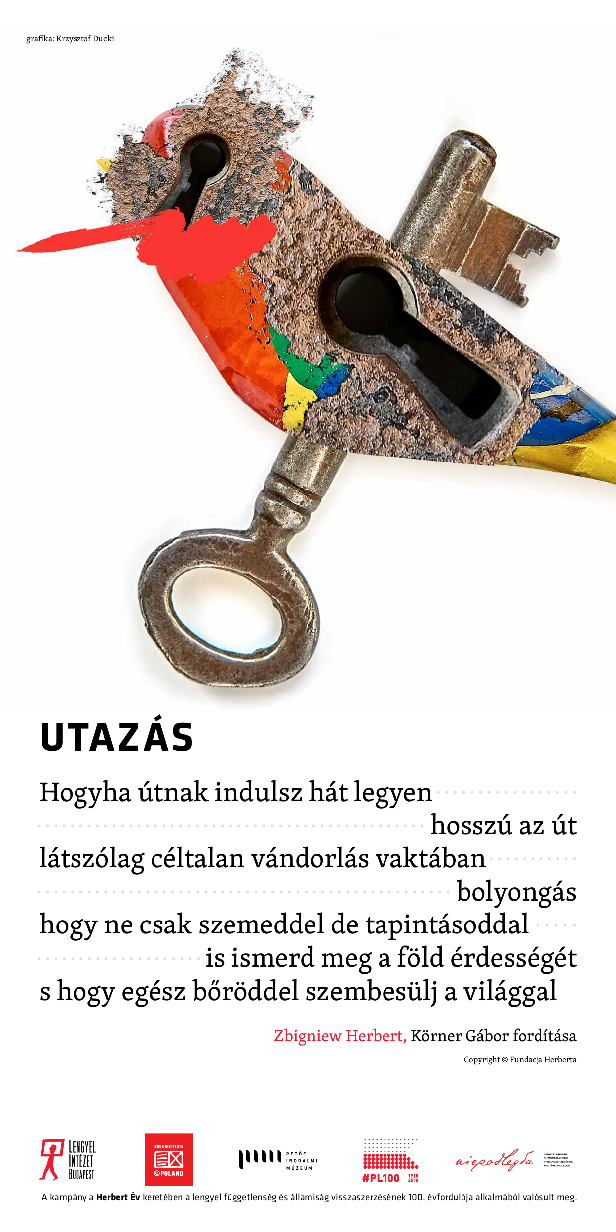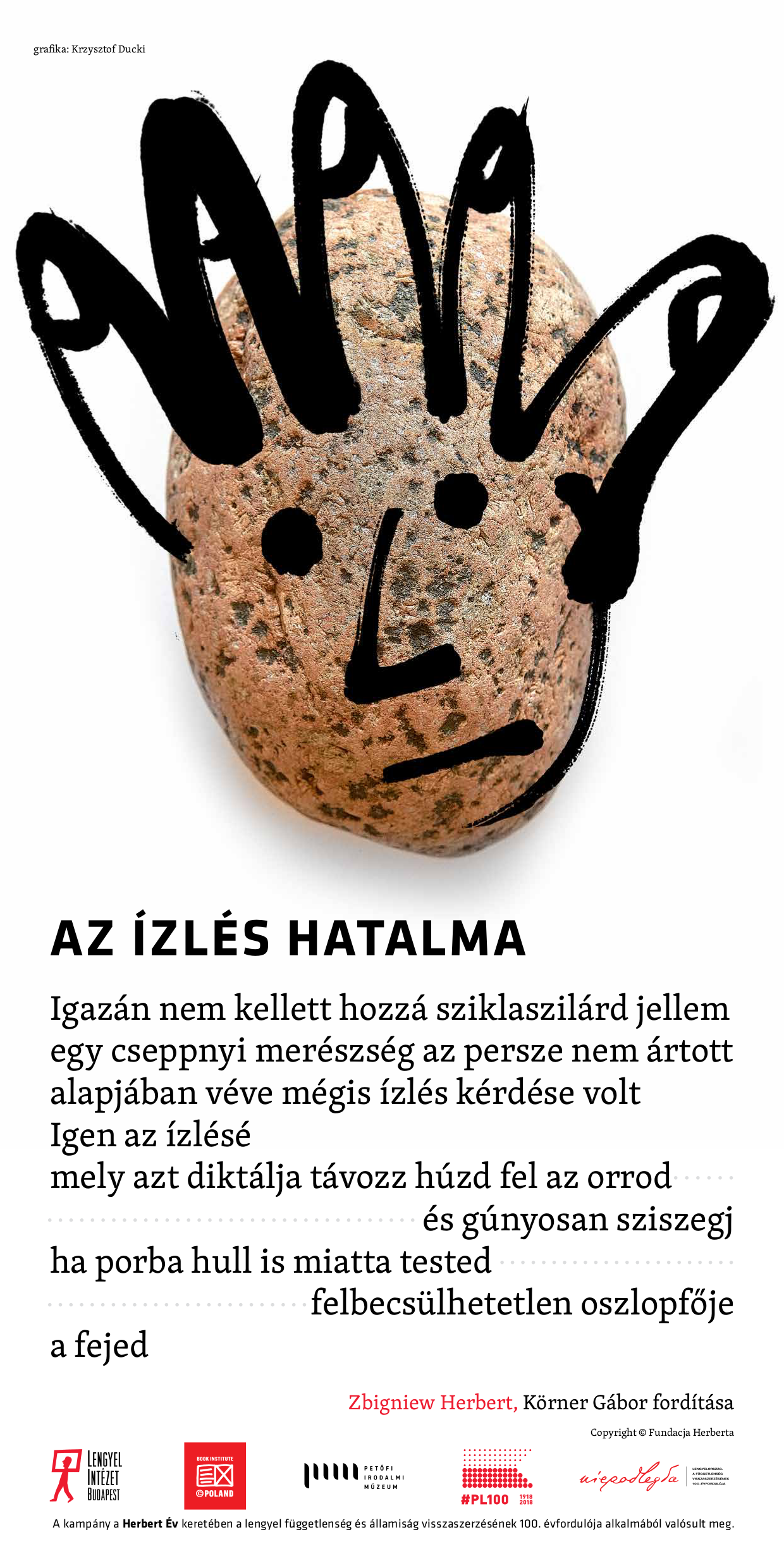 Dariusz Jaworski: The idea behind the campaign "Poems on the Underground" is to present ten excerpts of different poems by Zbigniew Herbert in a beautiful graphic arrangement at the stations of three lines of the underground, on several hundred posters. They will be seen and read by people who travel by underground train. This is the second stage of our entrance with Polish high literature in the space of everyday life. Slightly earlier, for two weeks, on 5-18th November, we presented Polish poetry on over 1600 posters on the London underground – an excerpt from Adam Mickiewicz's "Pan Tadeusz", one of the excerpts of Zbigniew Herbert's poems, and one excerpt of Jarosław Marek Rymkiewicz's poems. It was a symbolic complement to the 3-year project of Poland's presence at the London Book Fair - one of the two most important events of this type in the world. The project was initiated in 2016, and it reached its peak in 2017 when Poland appeared at the fair as a guest of honour. In 2018, we symbolically end this period, although, as a matter of fact, we will never end this presence and activity.